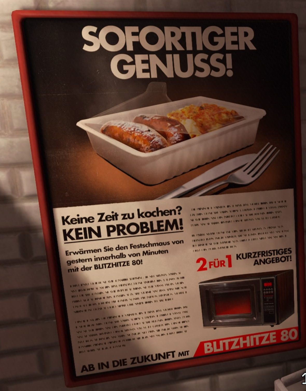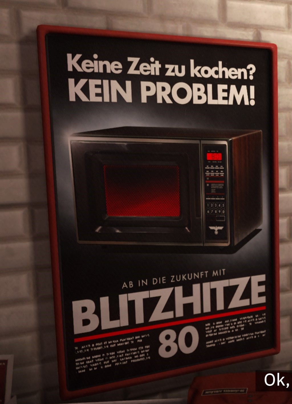 - Poster der Mikrowelle „Blitzhitze 80“ aus Wolfenstein: Youngblood. Screenshot: Pascal Wagner.