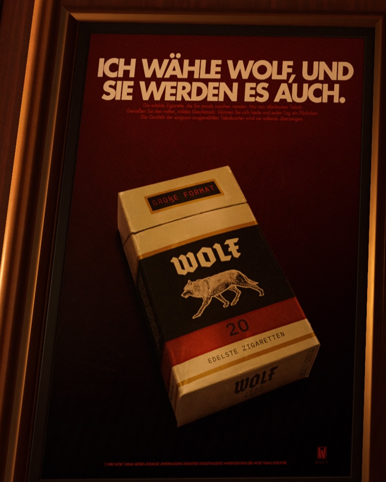 - Poster von Wolf-Zigaretten aus Wolfenstein: Youngblood. Screenshot: Pascal Wagner.
