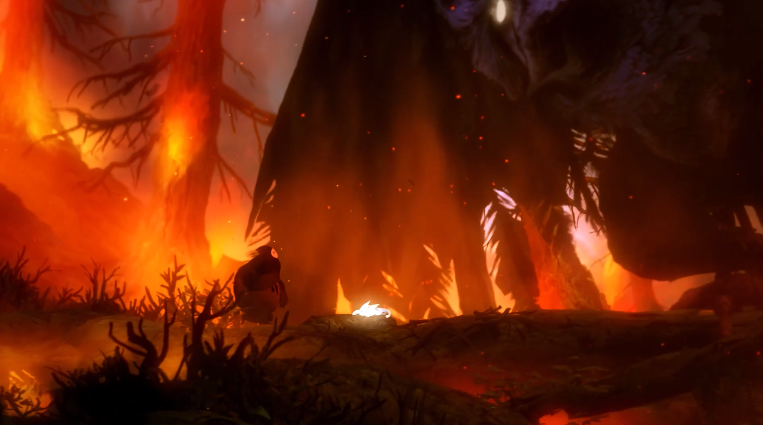 In heilsam wandelndem, läuterndem Kontext erleben wir das Feuer in Ori and the Blind Forest am brennenden Horu-Berg. Über das gesamte Spiel hinweg verfolgt Eule Kuro das Lichtwesen Ori mit erbittertem Hass durch den Wald Nibel: Kuros Küken sind aufgrund eines strahlenden Lichts verstorben, dessen Ursprung auch der Ursprung Oris ist. Im letzten Akt liegt Ori verwundet vor Kuros Füßen – umgeben vom Feuer des brennenden Horubergs. Oris Ziehmutter Naru taucht zwischen den Flammen auf, hebt das leblos wirkende Wesen auf und trauert. Bewegt von dieser Szene erinnert sich Kuro an ihre eigenen Küken und entschließt, Naru nicht denselben Schmerz zuzufügen, den sie selbst durchleben musste. Die Eule opfert sich, indem sie das verlorene Licht des Waldes zurück an seinen angestammten Platz bringt und daraufhin im gleißenden Licht stirbt. Der Wald Nibel ist damit gerettet und Regen löscht die Flammen. Hier bietet das Feuer folglich die Bühne für einen bewegenden Wandlungsprozess eines Wesens, das schlussendlich seine blinde Wut loslassen und ein selbstloses Opfer bringen kann.