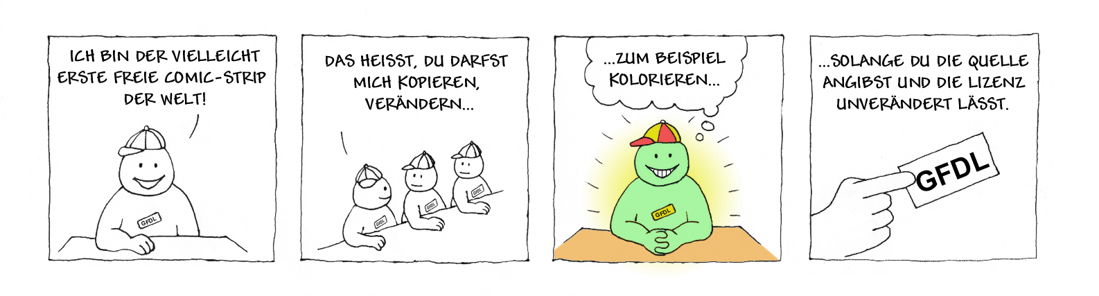 Ein Beispiel für Metaisierung in Comics anhand eines Werkes unter der „GNU-Lizenz für freie Dokumentation“ (Quelle: Wikipedia)
