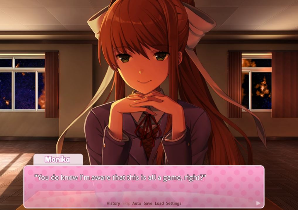 Monika wirkt dadurch, dass sie zwischen diesen Ebenen zu wandeln scheint und ihr Handeln für den/die Spielerin unvorhersehbar ist, wie eine unfassbare Entität. Das Überschreiten dieser Ebenen wirkt gar bizarr, phantastisch und paradox – im Falle von DDLC! angsteinflößend und horrorinszenierend.