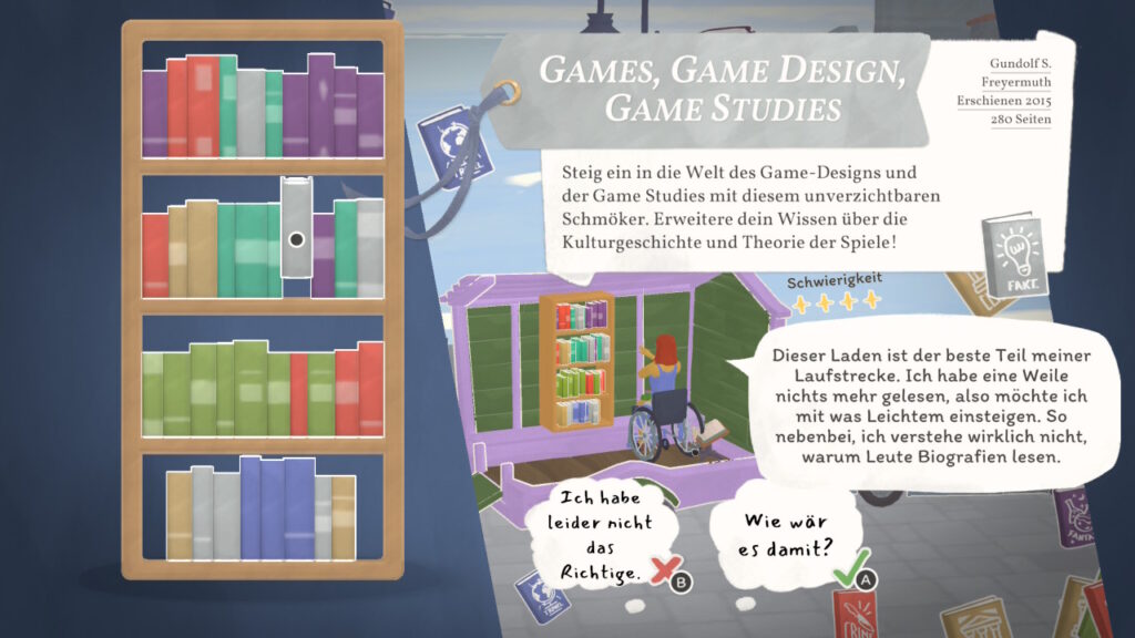 - Im Spiel Tiny Bookshop empfiehlt und verkauft man gebrauchte Bücher. Eines davon ist “Games, Game Design und Game Studies” von Gundolf S. Freyermuth. So überraschend und random diese Buchnennung zunächst erscheint, so viel logischer wird sie, wenn man bedenkt, dass sowohl der Kölner Developer Neuludic Games als auch Freyermuth über das Cologne Game Lab miteinander verbunden sind und hier wohl ein Gruß rausgeht.