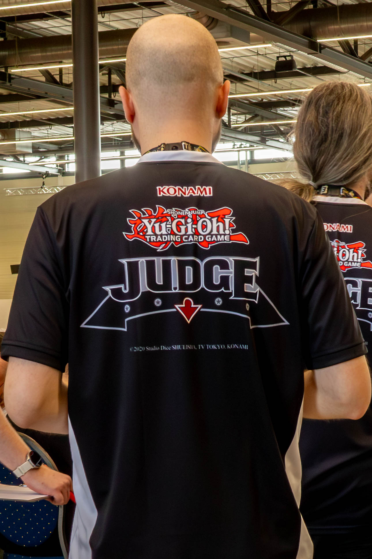 Das Phänomen „Yu-Gi-Oh!“ kam Ende der 1990er-Jahre auf, und viele der Anwesenden haben bereits als Kind angefangen, zu spielen. So auch Peter Warnecke aus Berlin, der inzwischen als Schiedsrichter tätig ist und auch für diese Meisterschaft berufen wurde. Peter wirkt ruhig und zurückhaltend, aber seine Hände sind fast unentwegt in Bewegung. Er scheint so gar nicht dem typischen Klischee eines „Schiris“ zu entsprechen – aber dennoch war sein Weg dorthin ganz natürlich. Da er schon immer wissbegierig war, kannte er schnell das, wahrhaftig nicht triviale, Regelwerk des Sammelkartenspiels deutlich besser als seine Mitspieler. Während er von seinem Werdegang erzählt, leuchten Peters Augen vor Begeisterung und auf einmal wirkt er gar nicht mehr so schüchtern wie zuvor. Er berichtet mit einer gesunden Selbstsicherheit, dass er den RC2-Test, den er für höherrangige Schiedsrichter-Tätigkeiten bräuchte, bereits zweimal „zum Spaß“ absolviert und beide Male mit 100% bestanden habe. Warum bleibt er dennoch ein „einfacher“ Schiedsrichter, der den ganzen Tag aufmerksam zwischen den Tischen umherlaufen muss? Die Antwort fällt ihm leicht: Er liebt das Spiel, dessen komplexe Regeln und die Interaktion mit den Spielern. Er will mitten im Geschehen bleiben.